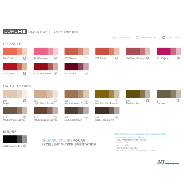 This line from Doreme provides you an alternative to iron oxide pigments and does not contain metals as an ingredient. They are brighter in colour than other pigments and made of organic pigment based on HPP (High performance pigments). These are a firm favourite with PMU technicians during lip procedures due to their vibrant colours.
